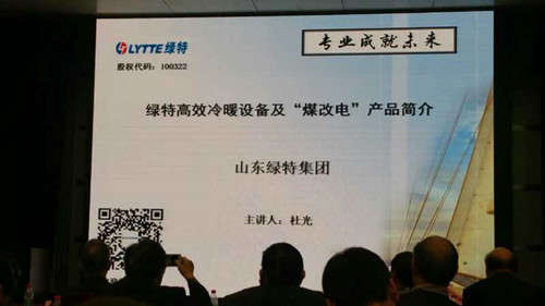 綠特集團(tuán)綠特營(yíng)銷總監(jiān)杜光在會(huì)議上以“綠特冷暖設(shè)備及煤改電產(chǎn)品簡(jiǎn)介”為主題做了重要匯報(bào),在匯報(bào)過(guò)程中,杜總針對(duì)當(dāng)下暖通行業(yè)的發(fā)展現(xiàn)狀以及煤改電等政策的條件下,綠特不斷研發(fā)新的產(chǎn)品技術(shù),以適應(yīng)行業(yè)發(fā)展需求,通過(guò)對(duì)公司在熱泵與鍋爐等產(chǎn)品應(yīng)用中的技術(shù)與案例進(jìn)行詳細(xì)的介紹,充分體現(xiàn)了綠特在打造綠色發(fā)展中取得的良好效益與經(jīng)濟(jì)效益,讓綠特產(chǎn)品在為推動(dòng)綠色暖通行業(yè)的發(fā)展做出更多的貢獻(xiàn)。