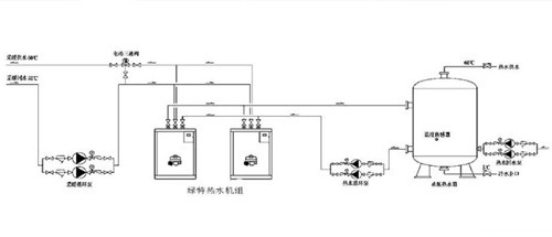 綠特中央熱水機組的優(yōu)點之一就是在中央熱水機組內(nèi)部直接進(jìn)行換熱,不用在中央熱水機組外另加裝換熱器。這樣的結(jié)構(gòu)設(shè)計使得綠特中央熱水機組的供熱系統(tǒng)比常規(guī)中央熱水機組簡單。并且綠特中央熱水機組可以內(nèi)里多組換熱器.每組換熱器能設(shè)置不同的溫度的壓力的熱水出水,這樣就能一合中央熱水機組同時實現(xiàn)采暇和衛(wèi)生熱水兩用。